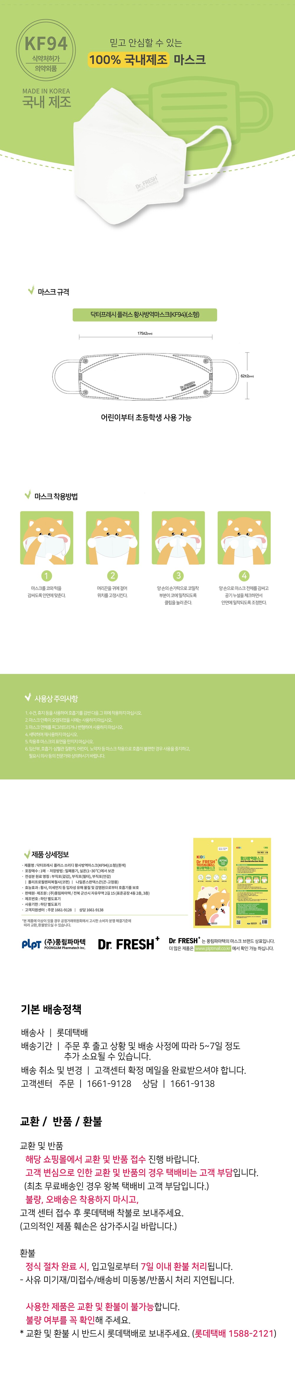 닥터프레시플러스 쓰리디 황사방역마스크 KF94 소형 (30개입)(개당528원)->(개당475원)